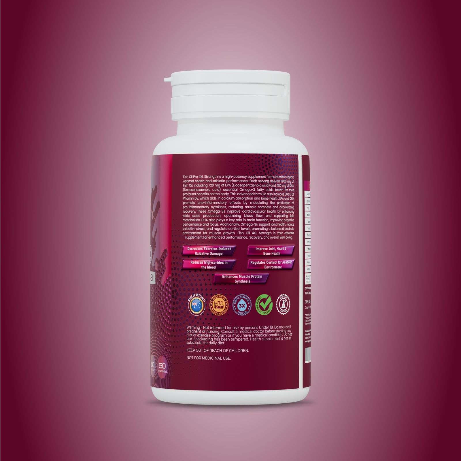 From reducing joint inflammation and enhancing cardiovascular output, to improving mental clarity, mood stability, and immune defense, Fish Oil Pro is designed to cover the entire recovery-performance spectrum that serious athletes care about.